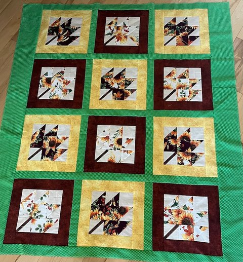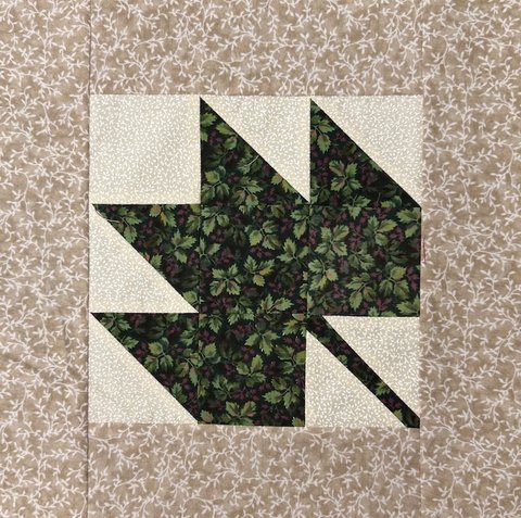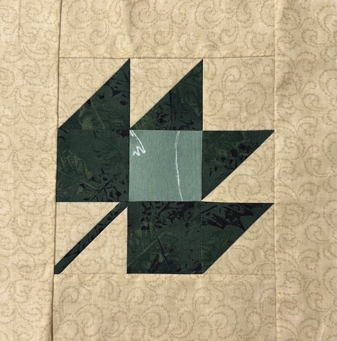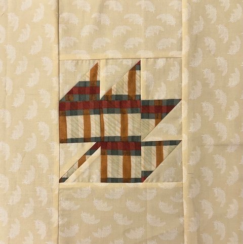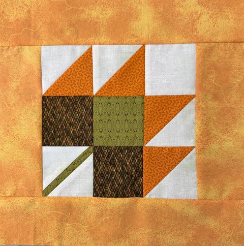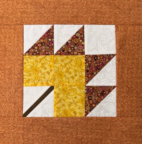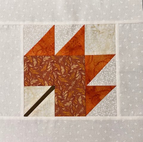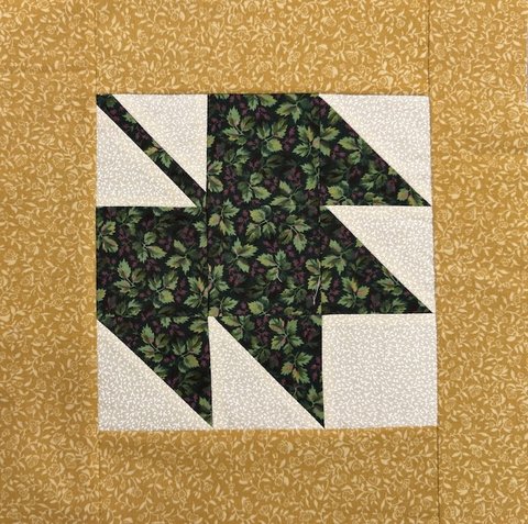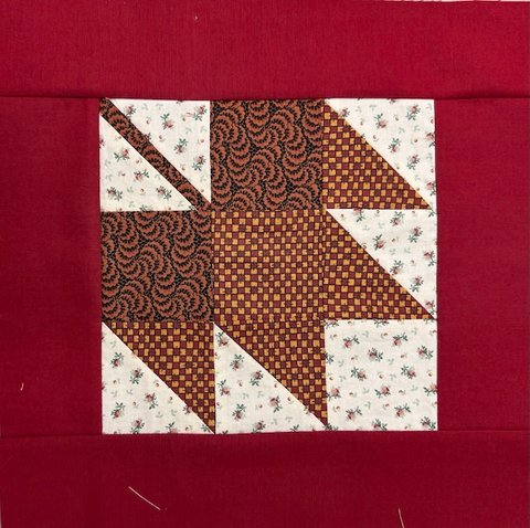 The pattern includes instructions for two block sizes. We suggest you make the larger 7 ½” block and add borders so your completed block measures 12” (unfinished). One 2 ½” strip of fabric is sufficient for the borders. Please note there is one error in the pattern – cut 2 - 3 ½” A squares instead of the 3 squares listed.